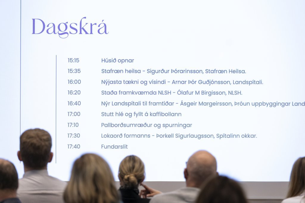 Ólafur M Birgisson, sviðstjóri framkvasviðs NLSH, fór yfir stöðu framkvæmda við Hringbraut þar sem verið er að byggja nýjan meðferðarkjarna, rannsóknarhús, bílastæðahús og viðbyggingu við Læknagarð sem þjón. Jafnframt verður farið yfir stöðu framkvæmda við Grensás, bráðamóttöku í Fossvogi og útboð á viðbyggingu við sjúkrahúsið á Akureyri.
