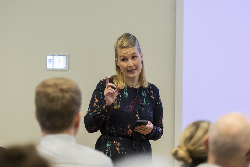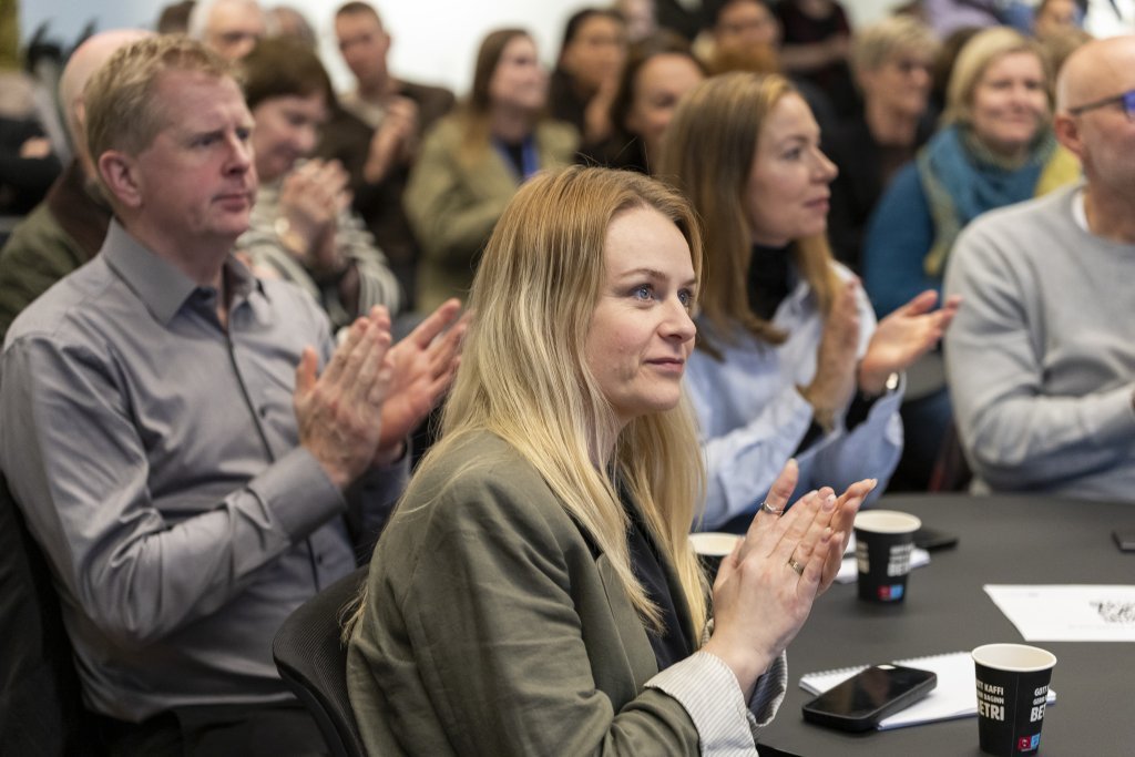 Pallborðsumræður. Að loknu málþingi voru fjörugar umræður og spurningum svarað úr sal í öruggum höndum fundarstjórans Áslaugar Evu.