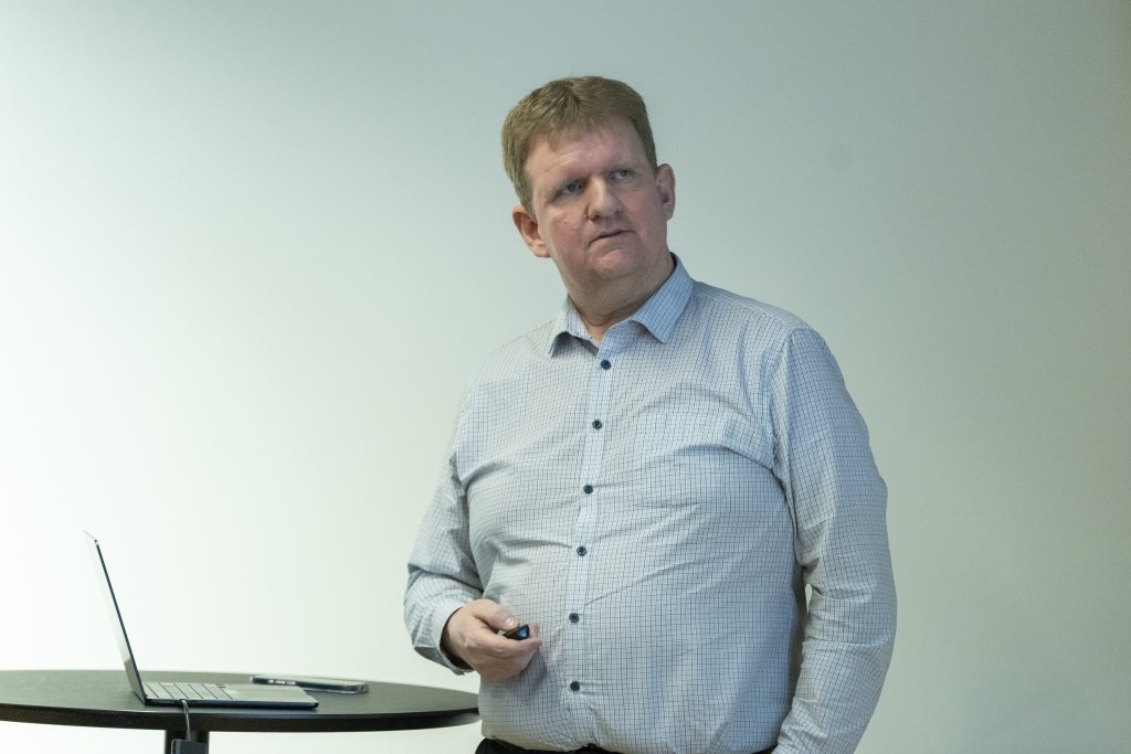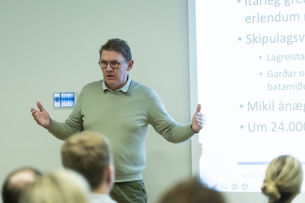 Arnar Þór Guðjónss, yfirlæknir háls-, nef- og eyrnalækninga Landspítala, fjallaði um nýjustu tækni og vísindi varðandi nýjustu tækni og vísindi og stafræna framþróun í nútíð og framtíð frá sjónarhóli læknis.